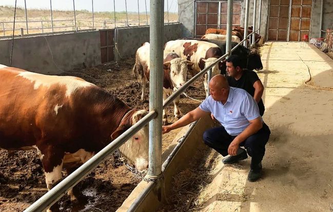 居麦克在旺利畜禽养殖农民专业合作社查看牲畜养殖情况