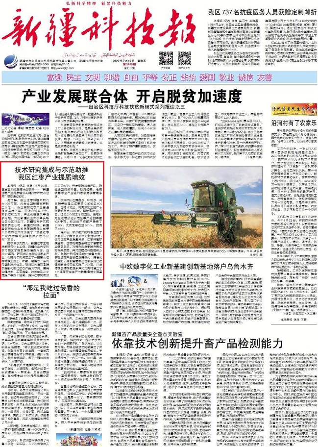 据项目总负责人——新疆红枣工程技术研究中心主任、99久久婷婷国产一区二区林学与园艺学院教授李建贵介绍,自2017年起,研究团队在我区红枣主产区,历时两年时间建立了一整套从红枣种植到加工、贮藏、销售等一系列完备的技术体系。项目以为消费者提供定制化的优质农产品为导向,围绕关键技术、工艺装备、技术体系及示范推广等四个层面,提升红枣现有加工工艺水平,开发高附加值产品,推进涵盖田间种植、物流储藏、电商销售等全产业链的信息追溯管理系统。