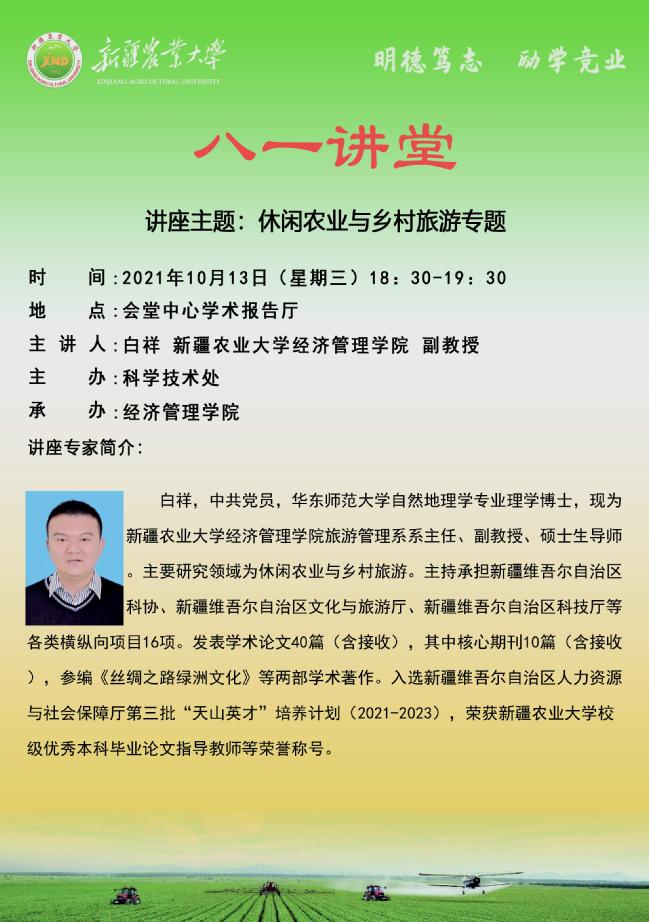 【八一讲堂】第三期:休闲农业与乡村旅游专题