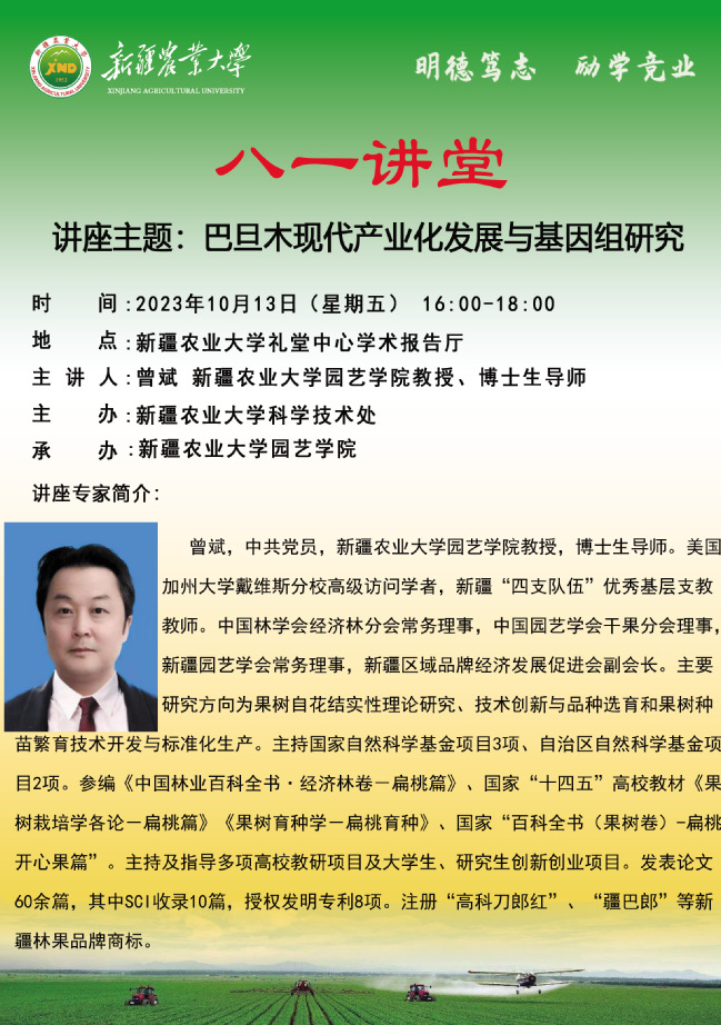【八一讲堂预告】第四十一期:巴旦木现代产业化发展与基因组研究