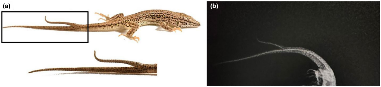 尾巴是爬行动物关键的功能部位,在它们生活的各个方面发挥着至关重要的作用,例如视觉展示、竞争行为、营养储备、运动能力、反捕食策略等等。在爬行动物中,自动断尾是一种常见的反捕食策略,蜥蜴通过断尾迷惑捕食者,从而增加瞬间的逃生机会。但是,断尾后的个体运动能力往往会大大减小。