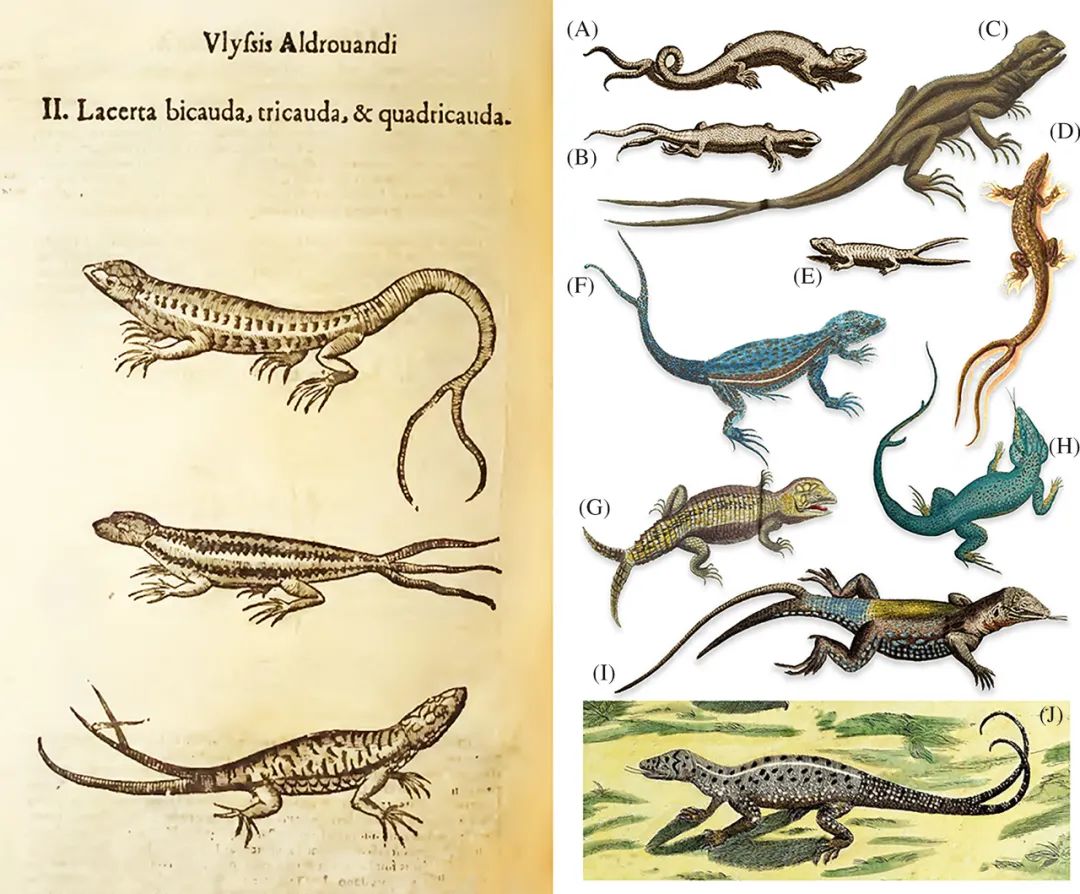 壁虎科、蜥蜴科和石龙子科等都具有再生尾巴的能力。当原有的尾巴断裂但是未能脱离身体时,这会导致异常的尾部再生现象(即断尾后形成多个尾巴)。人类对具有异常尾现象的记录已有近400年的历史,目前已有超100个物种有记录。然而,迄今为止,中国仅报道了一例。此外,异常尾再生是否影响蜥蜴的运动表现尚未有研究报道。