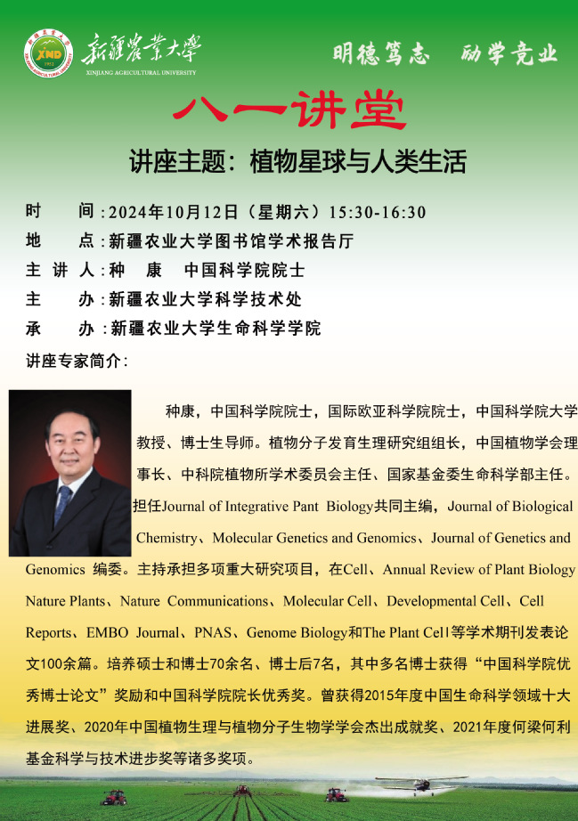 【八一讲堂预告】七十一期:植物星球与人类生活