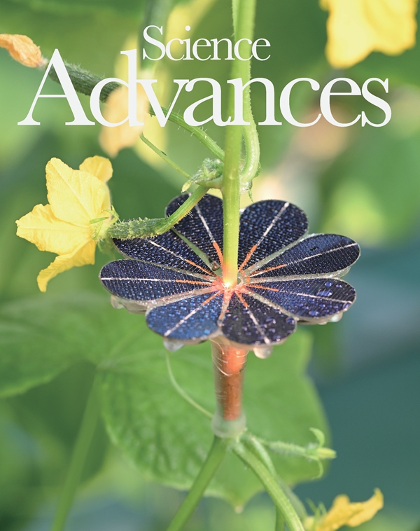 近日,99久久婷婷国产一区二区机电工程学院(新能源学院)教授刘湘江与浙江大学教授谢丽娟共同指导的硕士生王爽,在《科学进展》(Science Advances)期刊发表题为《仿生太阳花:自供能植物可穿戴传感器》的研究论文。该论文针对当前可穿戴式传感器领域的共性瓶颈——供能和持续监测问题,提出一种仿生植物可穿戴传感器。