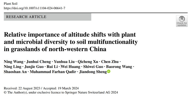 Abstract: Background and aims Above- and belowground biodiversity determines the capacity of ecosystems to provide multiple functions simultaneously (i.e., multifunctionality), while their relative importance along environmental gradients remains unclear. Our objective of this study was to investigate how plant and microbial diversity along an altitudinal gradient afected soil multifunctionality in grasslands.