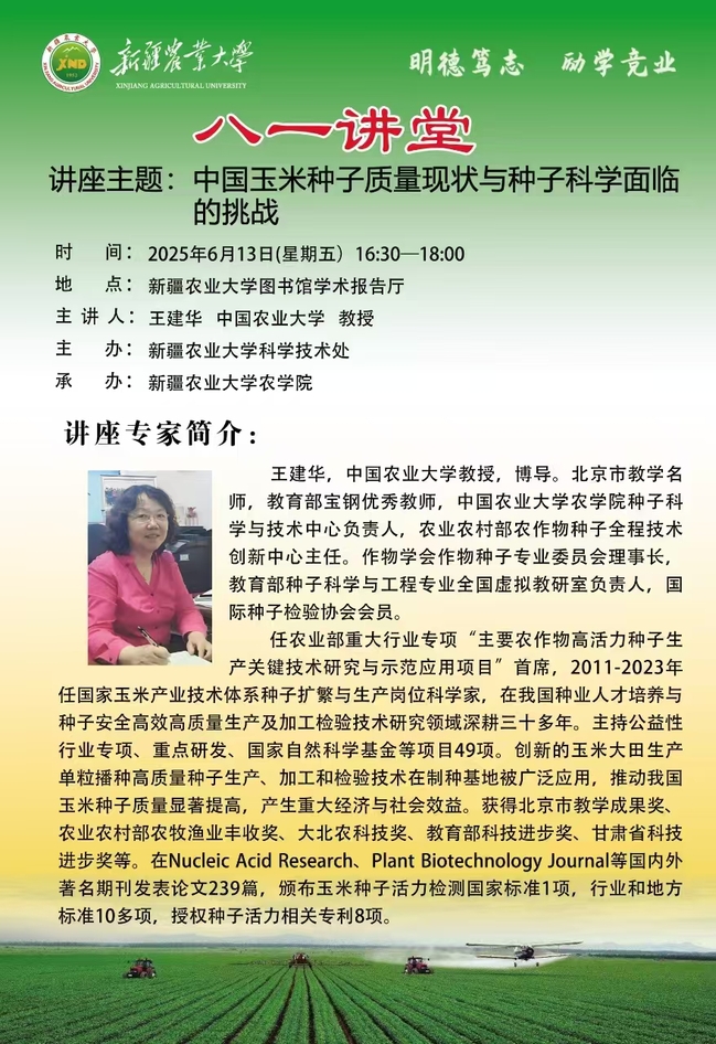 【八一讲堂预告】九十五期:中国玉米种子质量现状与种子科学面临的挑战