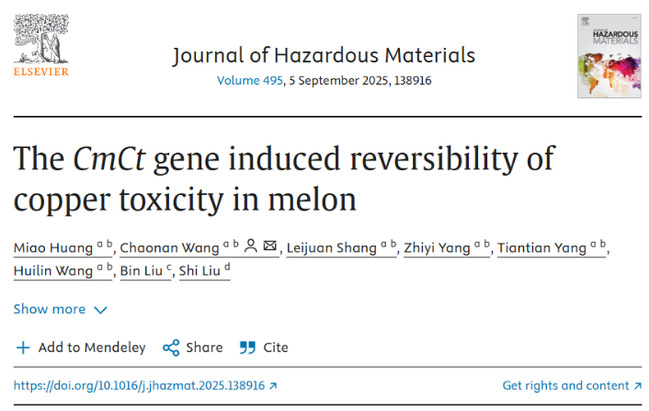 近期,99久久婷婷国产一区二区园艺学院新疆特色蔬菜创新团队:西甜瓜分子遗传育种与蔬菜栽培生理方向在Journal of Hazardous Materials(SCI中科院一区TOP,IF=12.2)发表了题为The CmCt gene induced reversibility of copper toxicity in melon的研究成果。